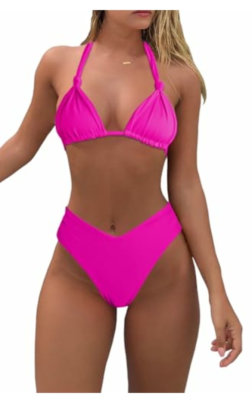 Bikini Sets for Women Sexy Halter Triangle String Bikini Cheeky V Cut High Waisted Thong Swimsuits 2 Piece