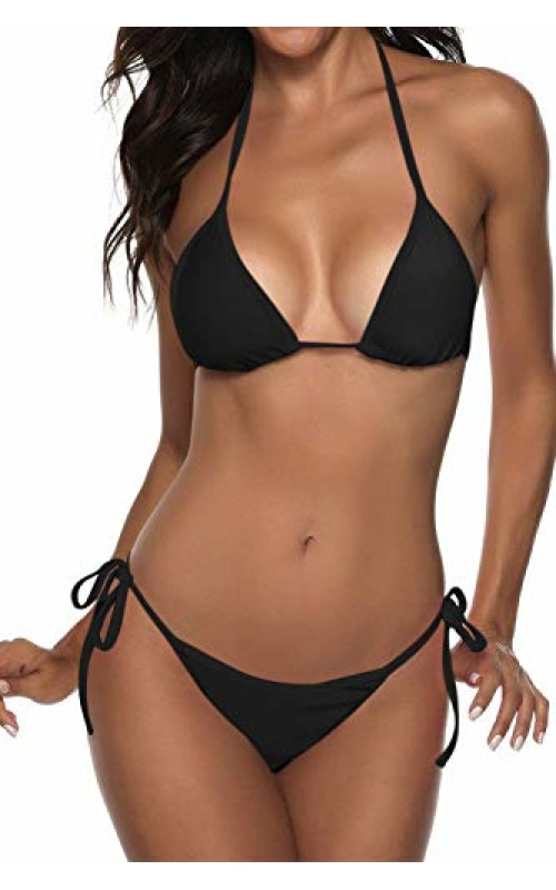 LIZENS Bikini Set for Women Tie Side Triangle String Sexy Swimsuit Womens Black Bikini Bathing Suit Tow Piece Bikinis Sets