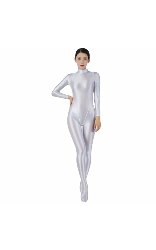 LESOYA Women’s Sexy Opaque Shiny Glossy Bodystocking Back with Zipper Bodysuit Long Sleeve Catsuit