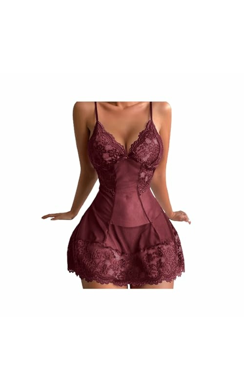 Pajamas Sets for Women Sexy Lingerie Lace Sleepwear V Neck Bodysuits and Thong Sets Full Slip Chemise Babydoll Night Gowns