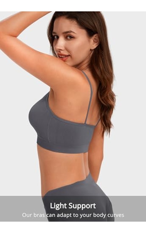 Angelhood Sports Cami Bras Pack for Women – Basic V-Neck Padded Seamless Bras with No Underwire