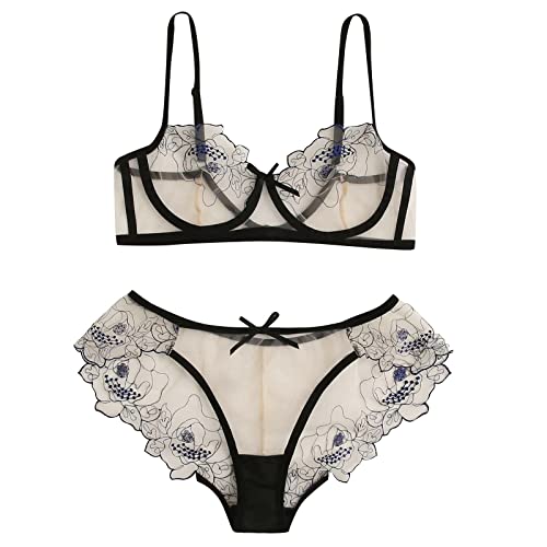Clothes for Women Sexy Lingerie Sexy Sheer Floral Lace Pajamas Lingerie Set High Waist Sleepwear Bra And Panty