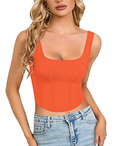 CLOZOZ Womens Bustier Corset Crop Tank Top Square Neck Sexy Crop Tops for Women Going Out Tops Trendy