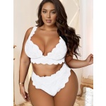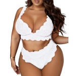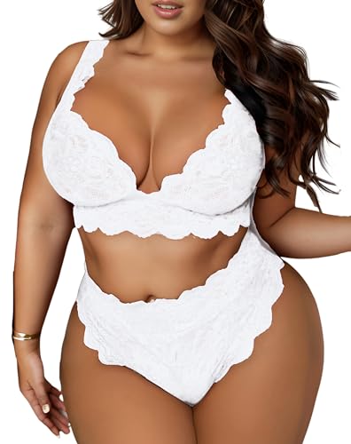 JuicyRose Women Plus Size 2 Piece Lingerie Sexy Floral Lace Scallop Trim Bralette and High Waist Panty Set
