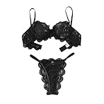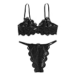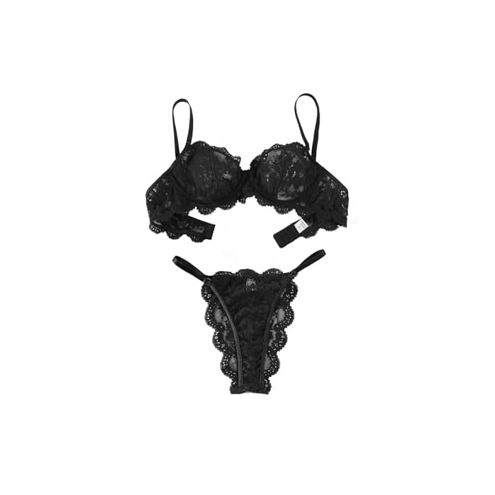 Lilosy Sexy Underwire Push Up Scallop Floral Lace Sheer Lingerie Set for Women Bra and Panty 2 Piece