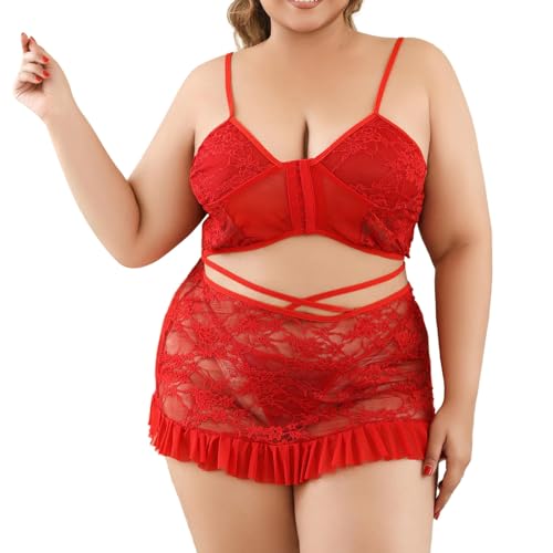 Lingerie for Women Plus Size Mesh See Through Ruffled Dress Naughty Bodystockings Transparent Lace Nightgown Lingerie