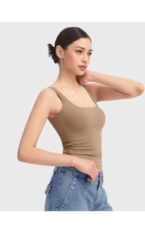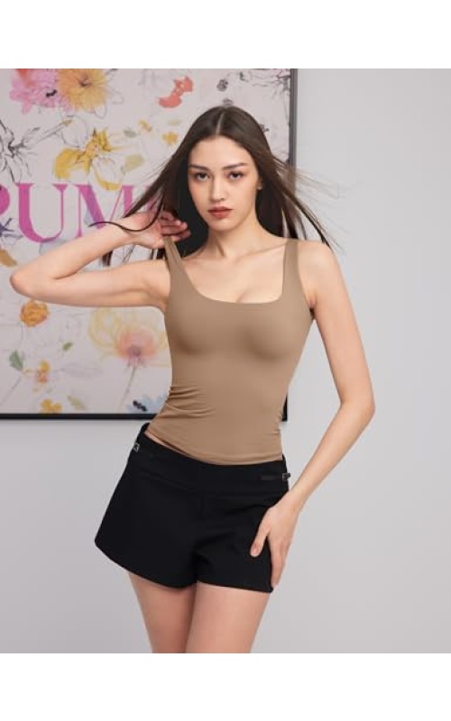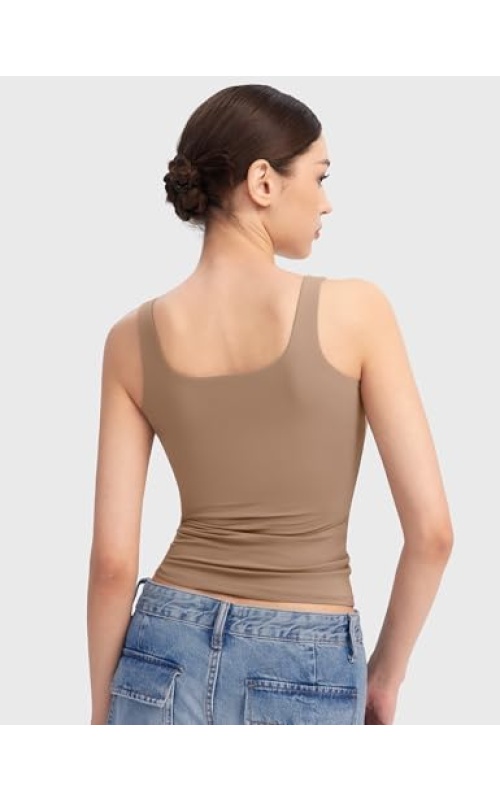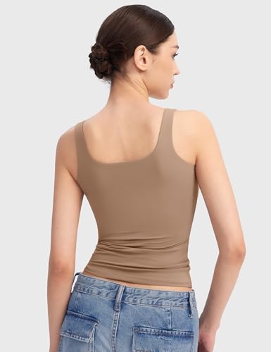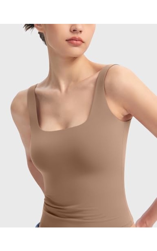 PUMIEY Women’s Square Neck Tank Top Sleeveless Double Lined Basic Tops Sharp Collection