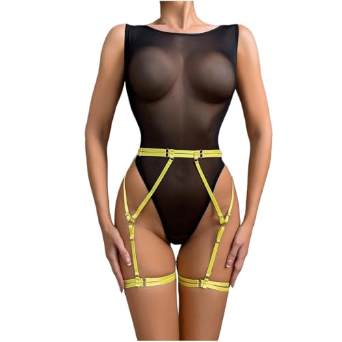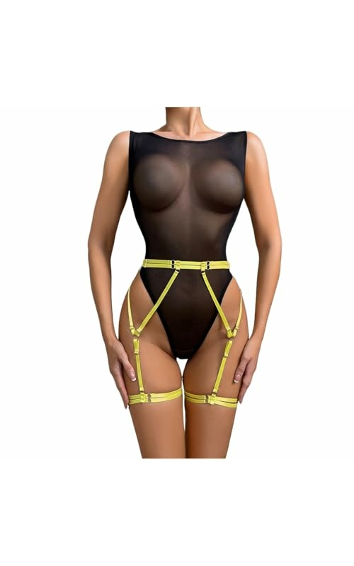 Sexy Lingerie for Women Mesh Teddy Babydoll with Strappy Blet See Through Lingerie Sets Bodysuit Pajamas Underwear
