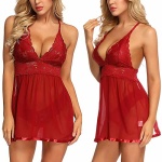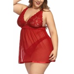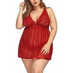 Women’s Plus Size Lingerie Red Babydoll Lace Split Cup Sleepwear Chemise Set