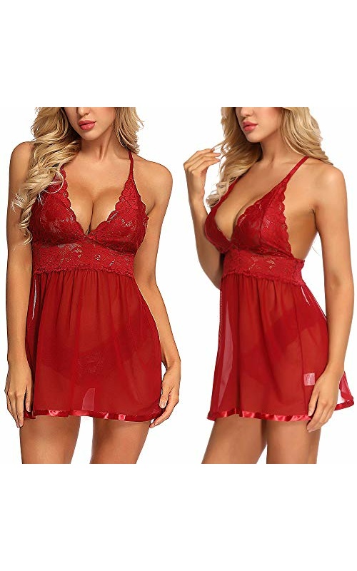 JuicyRose Open Back Lingerie Lace Babydoll Sleepwear Plus Size