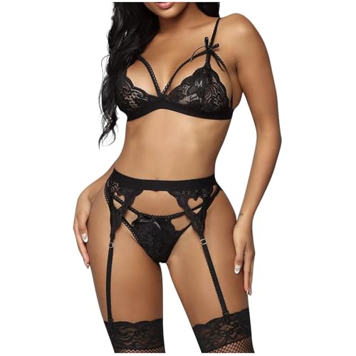 Women Lingerie Set with Garter Belt Plus Size Sexy Lace Babydoll Boudoir Outfits High Stockings Bra and Panty 3 Piece