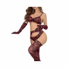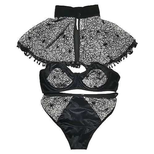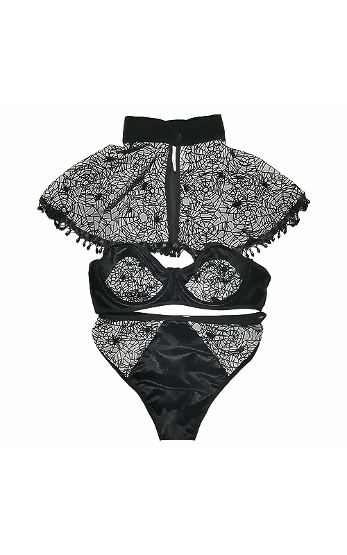 Women Sexy Halloween Festival Dress Up Sexy Lingerie Print Tassel Shawl Underwear Three Piece Set Peignoir Set