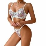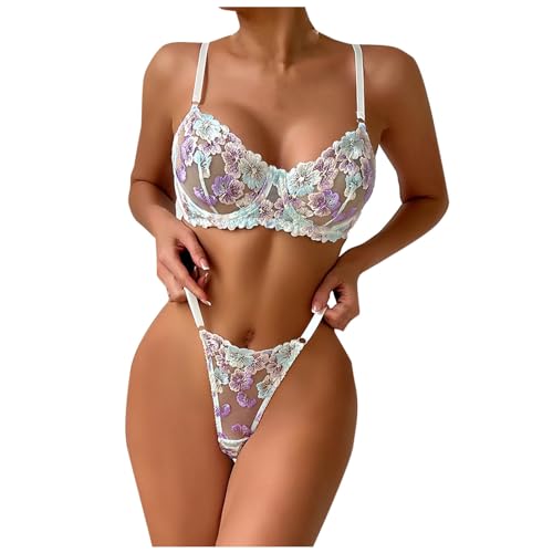 Womens 2 Piece Floral Mesh Bra and Thong Sexy Lace Lingerie Sets Sheer See Through Boudoir Outfits Slutty Babydoll