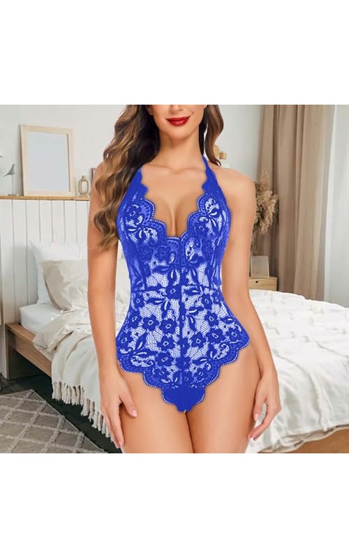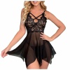 Walang Lip Women’s Fishnet Sexy Lingerie Lace Mesh Babydoll Chemise Nightwear Halter Garter Dress