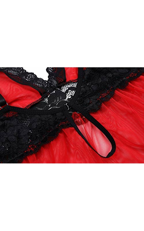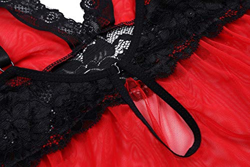 Women’s Plus Size Lingerie Red Babydoll Lace Split Cup Sleepwear Chemise Set