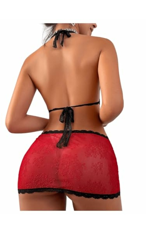 Generic Womens Plus Size Lingerie Set Exotic Lace Pajamas Mesh Strap Chemise Nightdress Honeymoon Bridal Nightgown