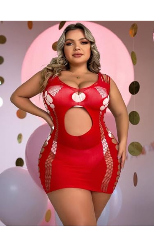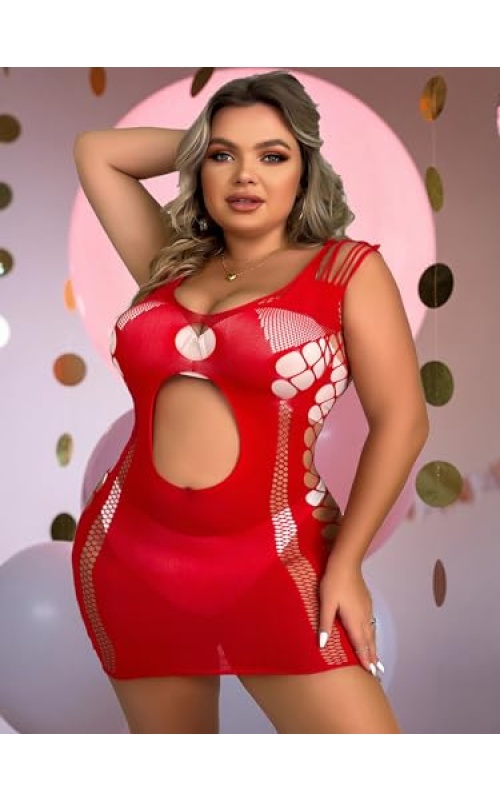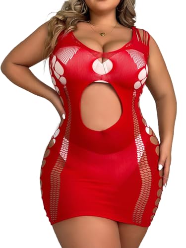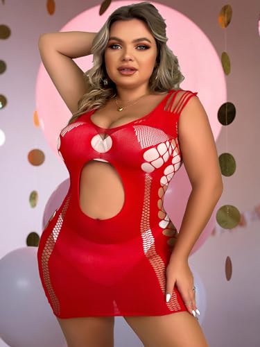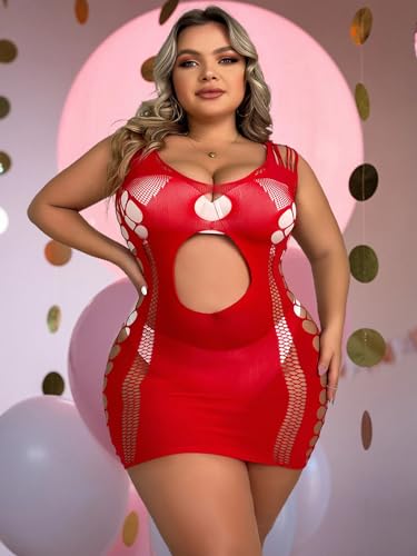 Abien Womens Sexy Bodystocking Plus Size Valentine’s Day Lingerie Red Lace Babydoll Lingeries Sexy Pajama Bodysuits for Women