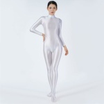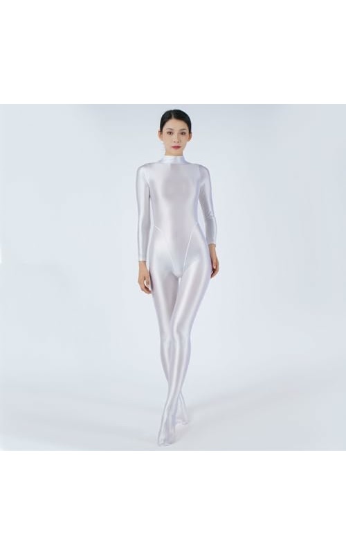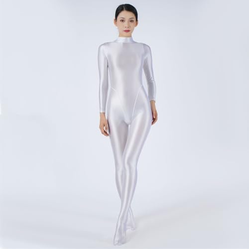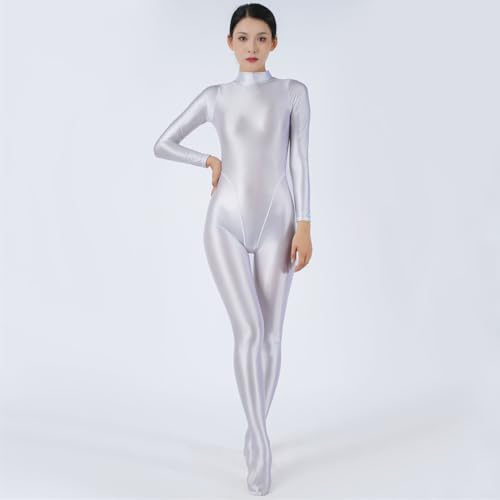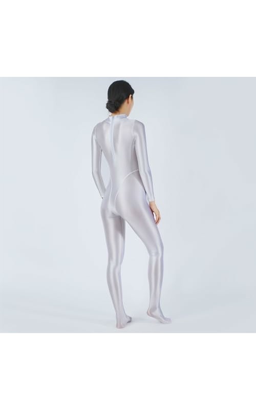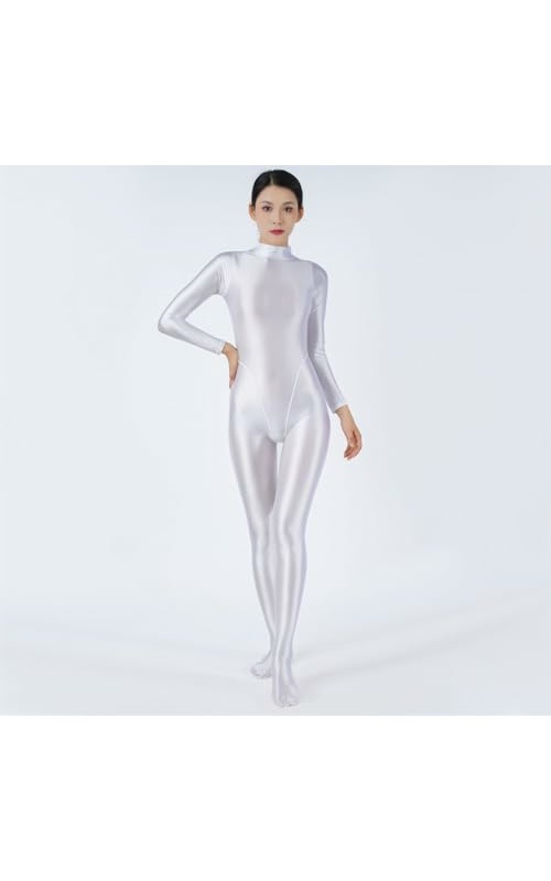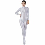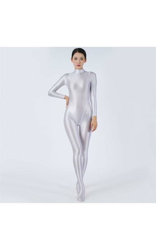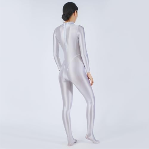 LESOYA Women’s Sexy Opaque Shiny Glossy Bodystocking Back with Zipper Bodysuit Long Sleeve Catsuit