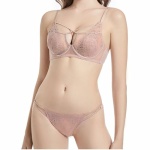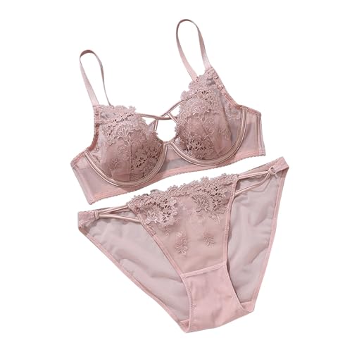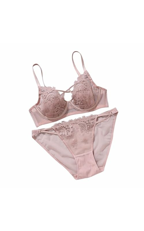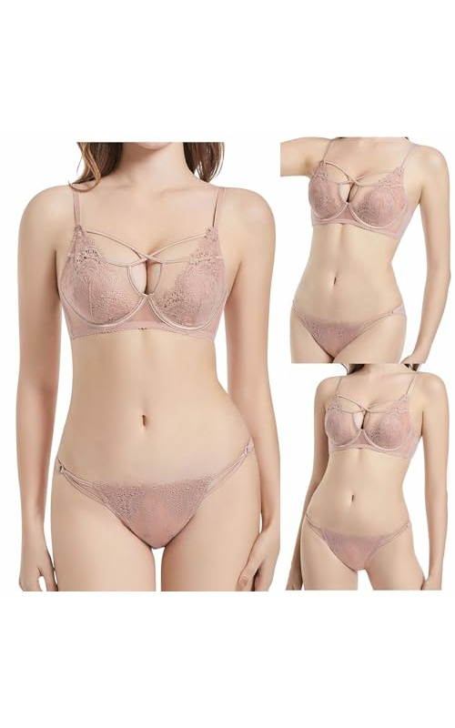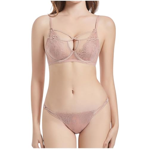 Womens Two Piece Lingerie Set Lace Bra with Thong Sets Sexy Cut Out Boudoir Outfits No Underwire Push Up Nightwear